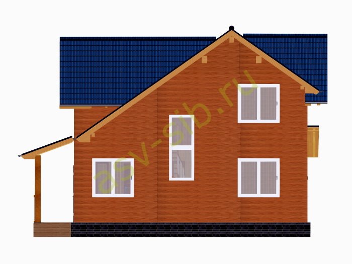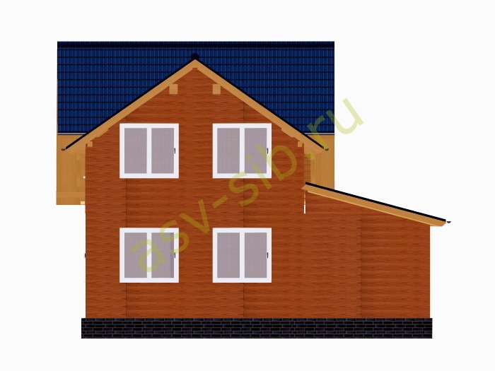 Проект разработан для г. Кемерово в 2012-м году. На начальном этапе дом планировался из оцилиндрованного бревна, но в процессе работы материал был заменён на более дешёвый – брус естественной влажности. Дом для круглогодичной эксплуатации. Сведений о реализации проекта заказчик не предоставил.